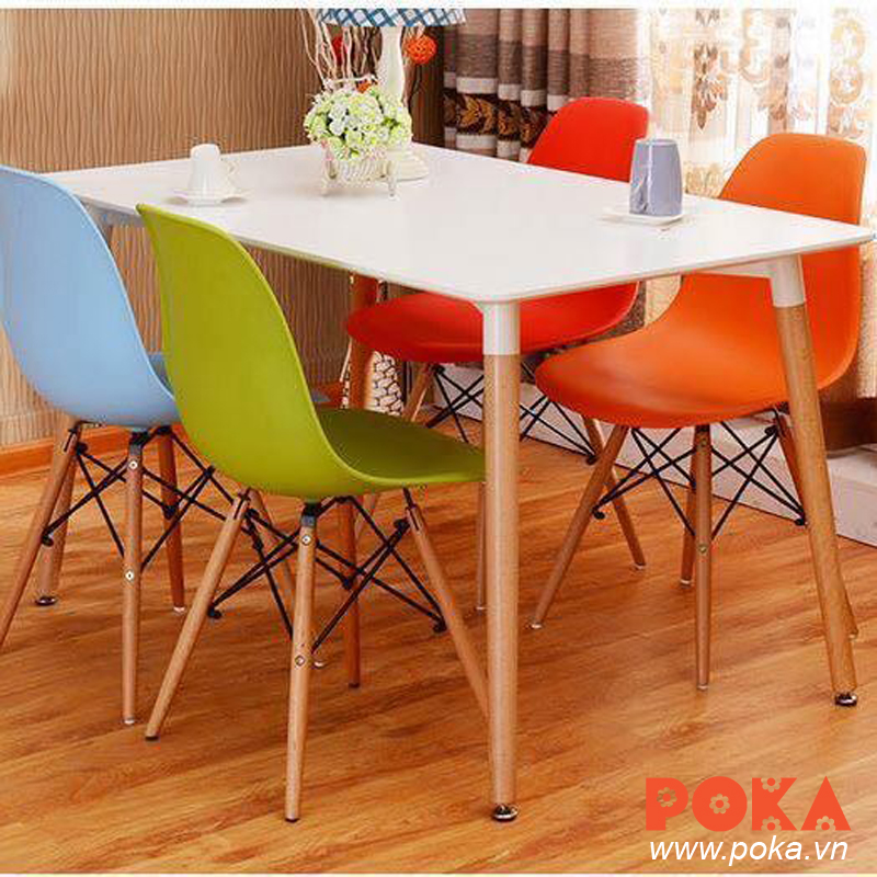 Mặt bàn Eames làm bằng gỗ nhựa composite với bề mặt sáng bóng, dẻo dai, dễ lau chùi, bền màu với thời gian.