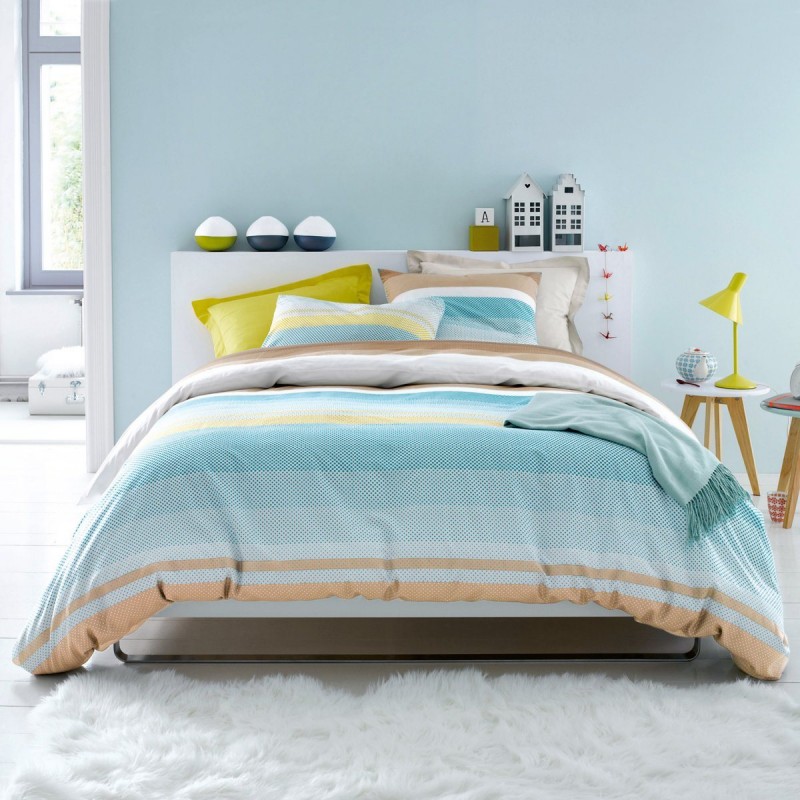 7. Bộ ga trải giường họa tiết hình học ấn tượng với nhiều sắc màu xen kẽ, không cầu kỳ nhưng vẫn toát lên sự hiện đại, năng động. Chất vải mềm mại, mát và nhẹ, không gây kích ứng đối với những làn da nhạy cảm. Ngoài ra còn làm điểm nhấn cho những phòng ngủ đơn sắc nữa đấy. Giá tham khảo: 700.000 đồng/ bộ sản phẩm.
