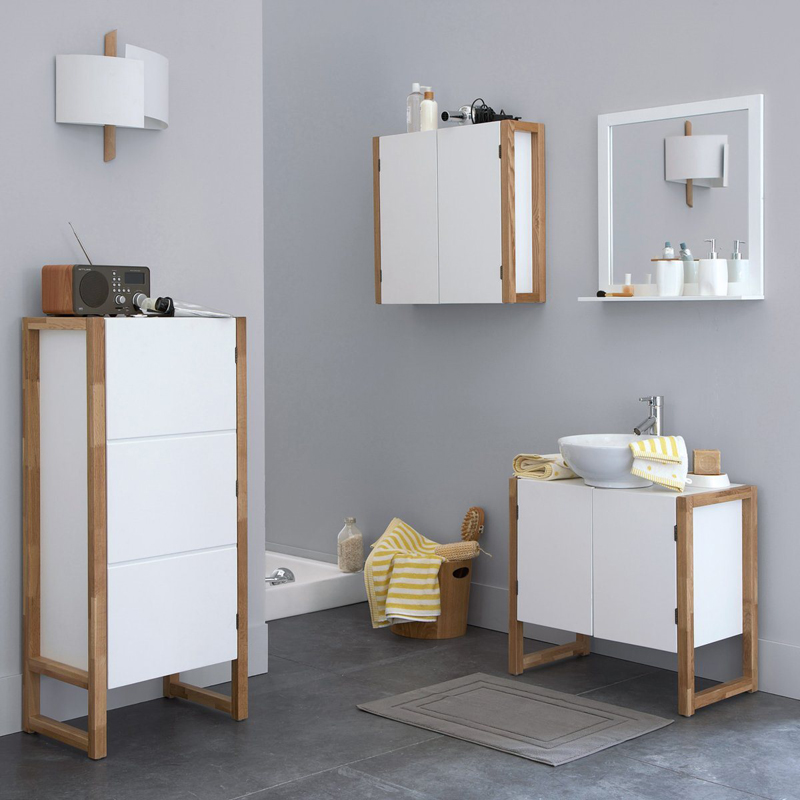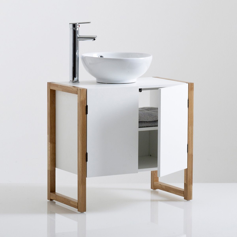 10. Một thiết kế nội thất hoàn hảo dành cho những ai muốn nâng cấp phòng tắm nhỏ của mình. Sản phẩm làm bằng gỗ vững chắc, cánh cửa tủ được gắn nam châm, bên trong là 2 ngăn rộng rãi, bên trên tích hợp bồn rửa bằng sứ và vòi nước bằng thép không gỉ tiện lợi. Kích thước 65 x 60 x 35.5 cm, giá tham khảo: 4.800.000 đồng/ sản phẩm.