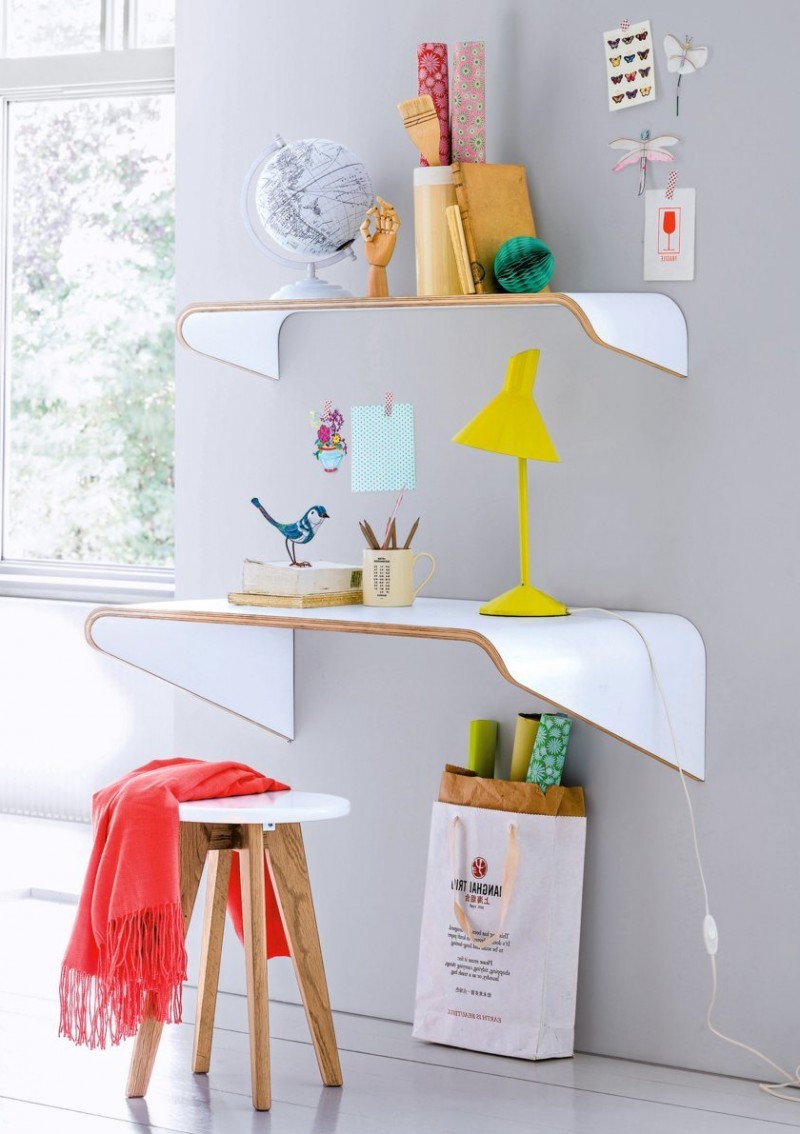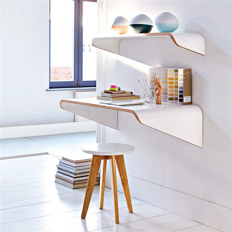 11. Ý tưởng “mượt mà” và duyên dáng tặng cho những cô nàng thích chăm chút góc làm việc tại gia. Chúng được lắp cố định trên tường, giúp tiết kiệm diện tích cho những căn phòng nhỏ. Ngăn lớn bên dưới được dùng như bàn làm việc, ngăn trên bé hơn dùng để trưng bày đồ dùng hoặc phụ kiện trang trí, tải trọng tối đa 25kg. Giá tham khảo: 5.800.000 đồng/ bộ sản phẩm.