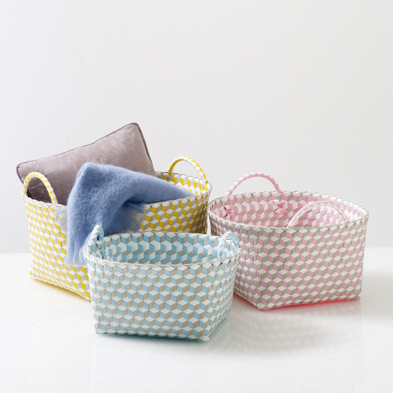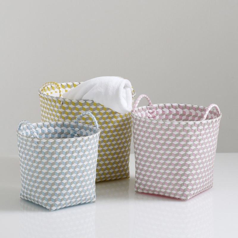 12. Và cuối cùng, bộ 3 chiếc giỏ xinh xắn, màu sắc tươi trẻ này sẽ giúp cho căn phòng luôn gọn gàng sạch sẽ. Được dệt từ Polypropylene (vật liệu dùng để sản xuất túi xanh cho siêu thị) nên rất thân thiện với môi trường, chống thấm nước. Bạn có thể dùng để đựng quần áo bẩn trong phòng tắm, làm nơi cất đồ chơi cho bé yêu,… Giỏ đựng rộng rãi, tay cầm tiện lợi Giá tham khảo: 600.000 đồng/ bộ sản phẩm.