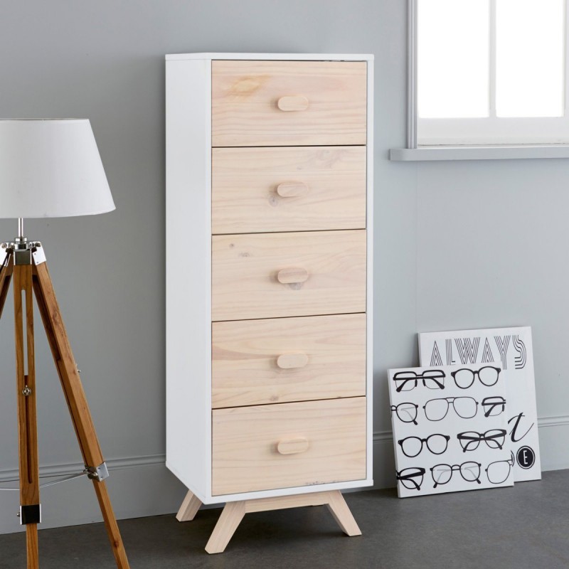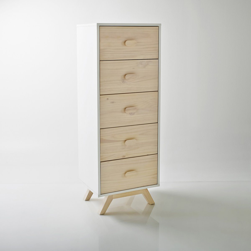 4. Chiếc tủ vững chãi với 5 ngăn kéo rộng rãi tha hồ đáp ứng nhu cầu lưu trữ của bạn. Không những thế, sự kết hợp giữa màu trắng thanh lịch và gỗ sáng màu cũng góp phần làm cho nó trở nên đẹp mắt hơn. Kích thước 50 x 40 x 140 cm. Giá tham khảo: 5.700.000 đồng/ sản phẩm.