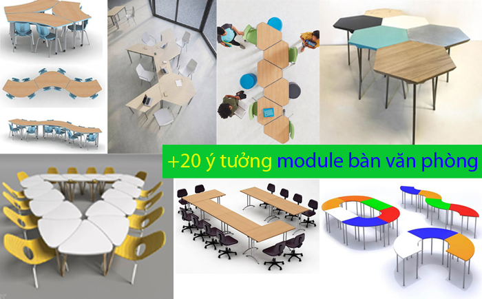Bàn làm việc module được lắp ghép với nhau từ 2 trở lên với nhau, công năng của bàn module rất linh hoạt, có thể làm bàn nhân viên rời độc lập, nhưng khi cần họp nhóm, làm việc team...có thể kê lại với nhau thành 1 module khối liền. Ngoài ra hệ bàn module cũng là một điểm nhấn cho văn phòng của Bạn. Dưới đây là những ý tưởng bàn làm việc module mà chân bàn poka sưu tầm tổng hợp từ internet mọi người cùng tham khảo.