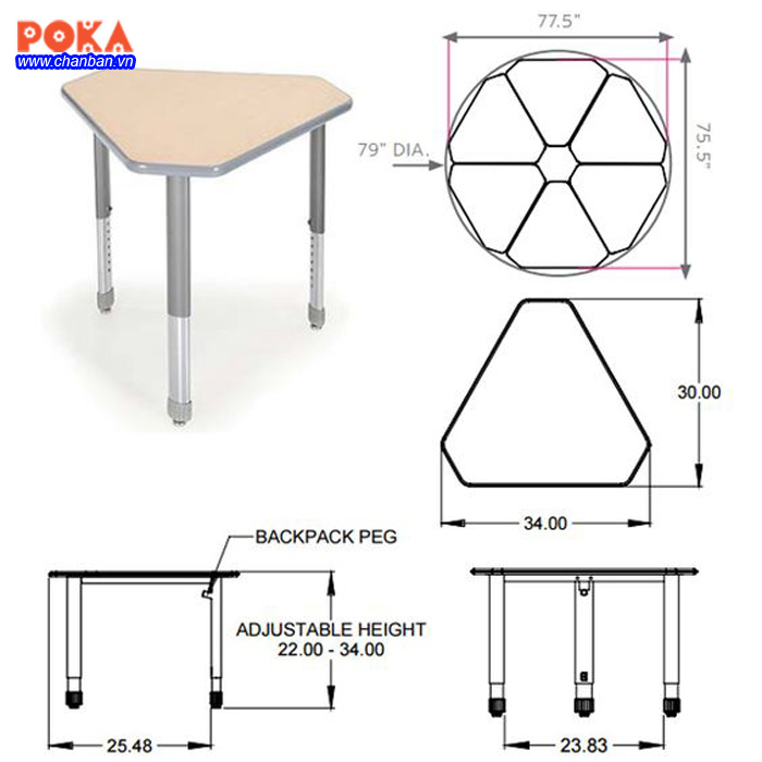 Hình 4: bản vẽ chi tiết một hệ bàn module đa giác