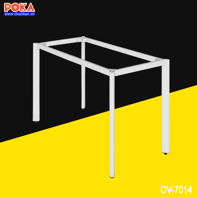 Chân bàn Oval OV-7014 kích thước D1400xR700xC750mm, ống Oval 30x60mm, thanh giằng 20x40mm. Chất liệu thép sơn tĩnh điện màu đen, trắng, xám đậm, xám nhạt giúp chống trầy xước, oxy hóa gia tăng tuổi thọ sử dụng, dưới chân có nút bịt nhựa tăng chỉnh. Chân bàn sắt ống oval thường được lắp với mặt bàn gỗ công nghiệp Melamine cao cấp tạo nên sự sang trọng cho không gian văn phòng và thoải mái khi làm việc.