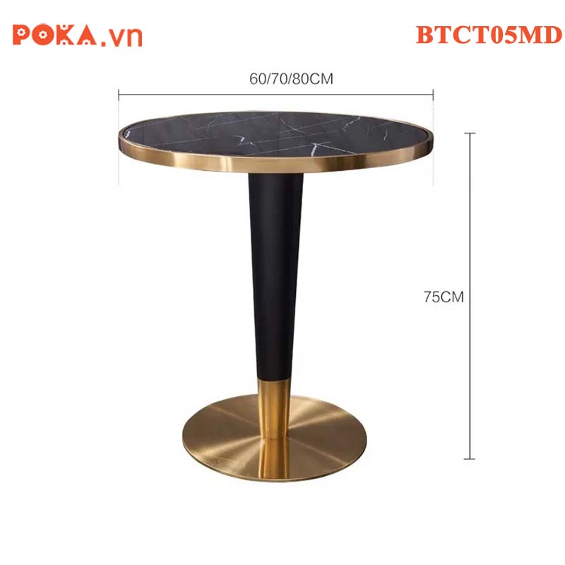 Thông số kỹ thuật Bàn Cafe Cao Cấp trụ tròn mạ vàng mặt gỗ bọc viền vàng BTCT05MD: