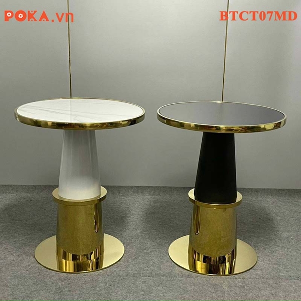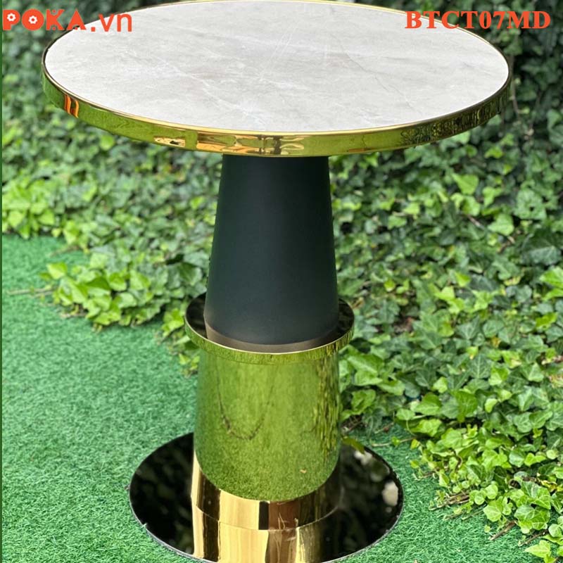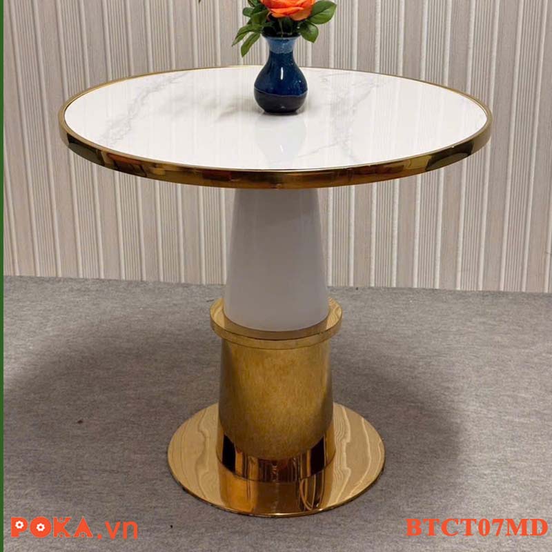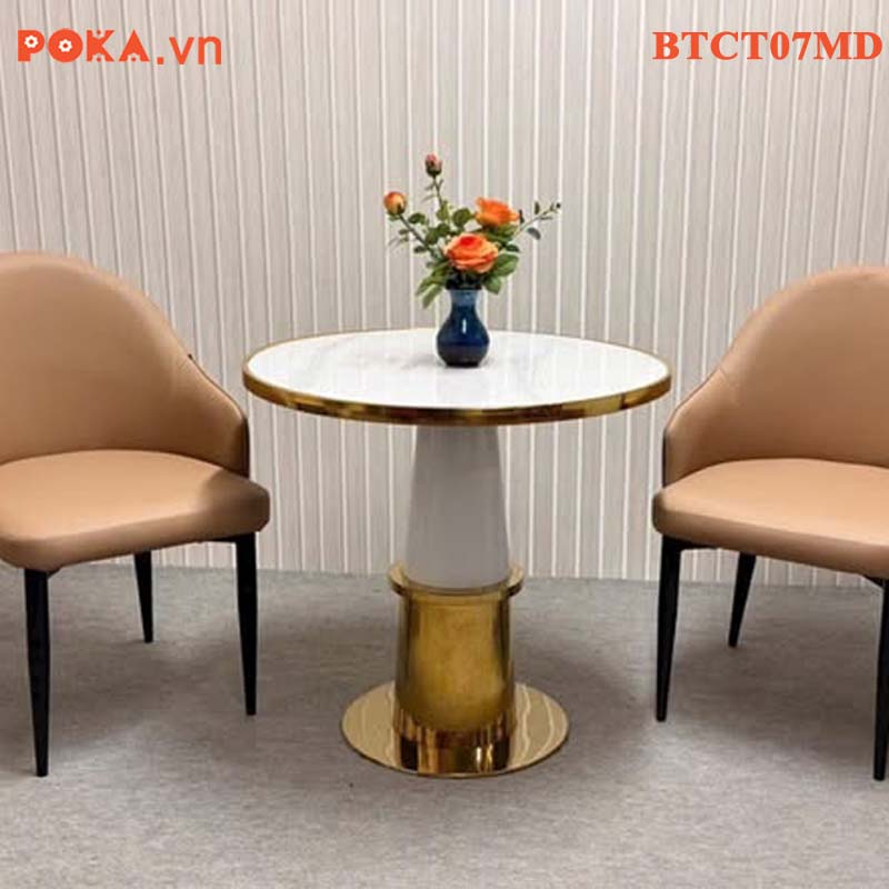 Bàn Cafe Cao Cấp trụ tròn mạ vàng mặt gỗ bọc viền vàng BTCT07MD
