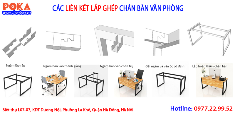Hiện nay trên thị trường có 4 liên kết chân bàn tháo rời lắp ghép phổ biến nhất