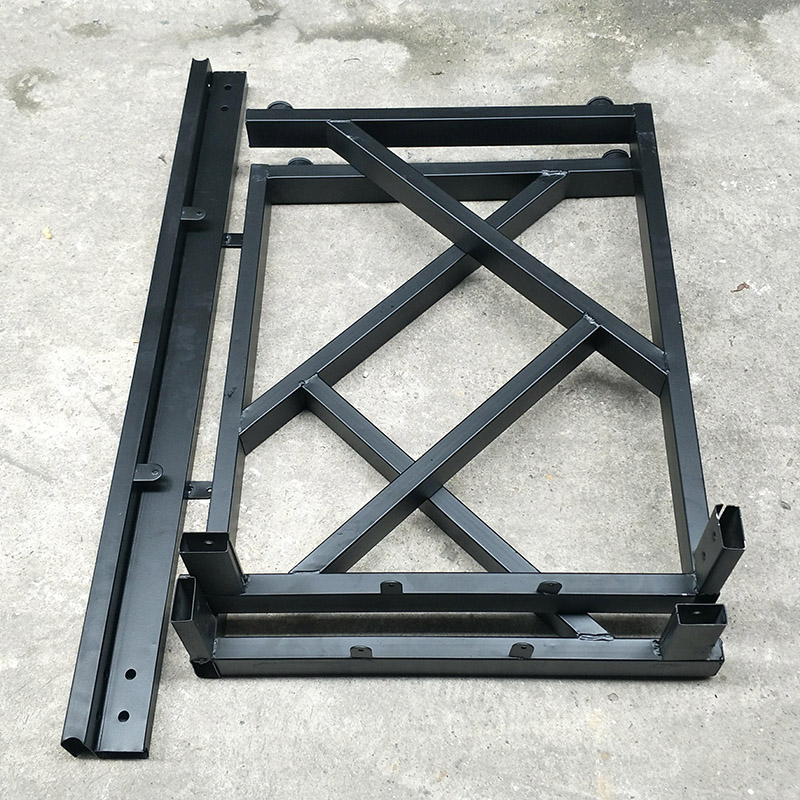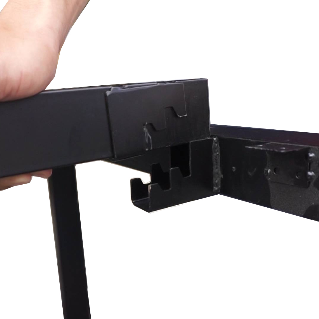 - Liên kết góc (liên kết xương cá): dạng liên kết này thường sử dụng phổ biến ở mẫu chân bàn oval hoặc mẫu chân bàn sắt hộp vuông, dang liên kết này ít được sử dụng hơn vì khi làm giằng cần phải có máy đột lỗ để bắt liên kết, chính vì thế nếu không phải những xưởng chuyên sản xuất chân bàn văn phòng như Poka sẽ rất khó thi công triển khai những dạng liên kết này, Nhưng với dạng liên kết này có một ưu điểm vượt trội hơn các liên kết khác đó là tối ưu được việc đóng gói, giảm thiểu chi phí logistic, rất phù hợp cho vận chuyển đi xa,