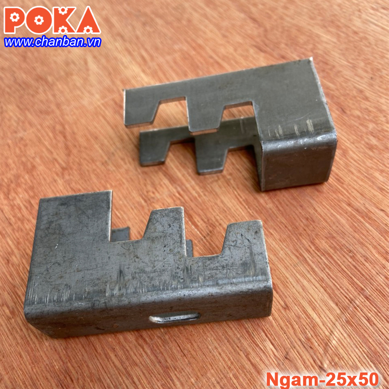 - Liên kết ngàm sập (liên kết răng cưa): đây là dạng liên kết được sử dụng rộng rãi nhất hiện nay vì cả tính thi công, cũng như dễ dàng tháo lắp cho thợ triển khai tại công trình. 1 bộ ngàm gồm có 2 cái được gọi là ngàm âm dương, chỉ cần sập 2 cái khớp vào nhau và sau đó bắn 1 con bulon duy nhất từ dưới lên là đã có 1 liên kết vô cùng chắc chắn.