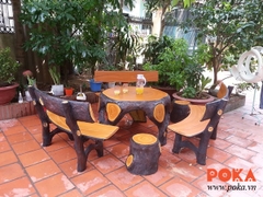 POKA chuyên cung cấp Bàn ghế bê tông giả gỗ, bàn ghế xi măng gốc cây giả gỗ, bàn ghế sân vườn, bàn ghế ngoài trời cho biệt thự, village, resort, trường học, khu vui chơi, công viên, đình chùa, nơi công cộng...