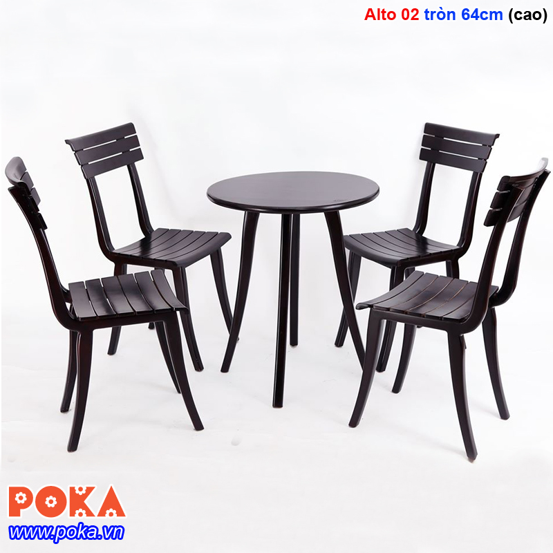 Ảnh 1: Bàn Fansipan Alto 02 tròn 64cm kết hợp ngồi với 4 ghế cafe Alto 02