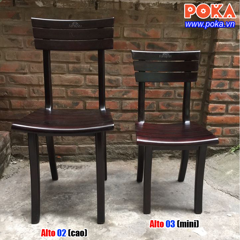 Ảnh 3: Ghế cafe Alto 02 và ghế gỗ mini Fansipan Alto 03 loại nhỏ khi đặt cạnh nhau.