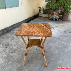 Đặc điểm: Mặt bàn nhôm bền bỉ với độ dày 2mm, nổi bật với màu sơn đá cẩm thạch tự nhiên. Hình vuông 770x770mm.