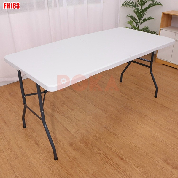 Bàn xếp du lịch chữ nhật FH183 này có thể gấp gọn phần chân bàn lại, đặc biệt có tay xách giống như cái vali rất tiện lợi cho việc di chuyển.