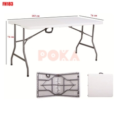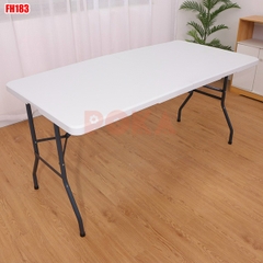 Bàn xếp du lịch hình chữ nhật FH183, với kích thước chiều dài 183cm, chiều rộng 76cm nên bạn có thể thoải mái bày biện đồ ăn cho những chuyến picnic dã ngoại ngoài trời. Bề mặt bàn rất dài nên có thể kết hợp với 6 đến 8 ghế ngồi xung quanh.