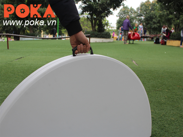 Bàn xếp du lịch tròn HM-FR122 này có thể gấp gọn phần chân bàn lại, đặc biệt có tay xách giống như cái vali rất tiện lợi cho việc di chuyển.