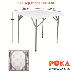 Bàn xếp du lịch hình vuông HM-F80 này có thể gấp gọn phần chân bàn lại rất tiện lợi cho việc di chuyển.