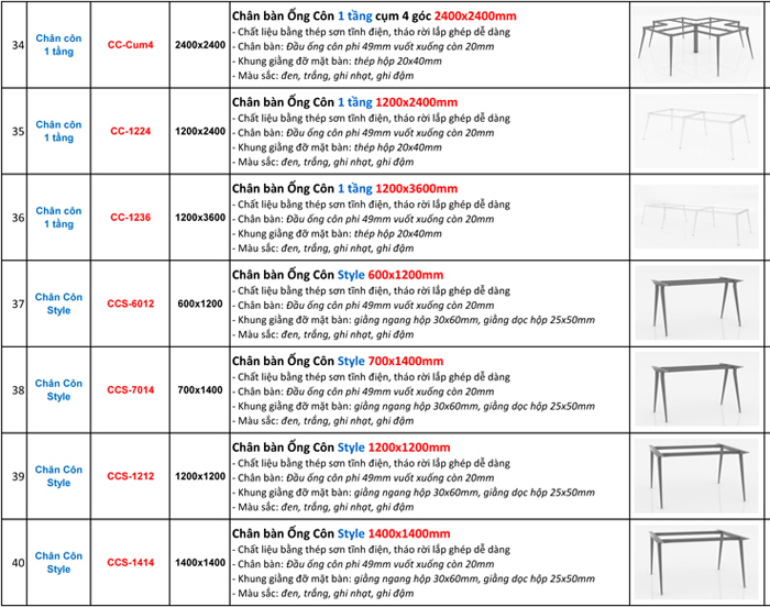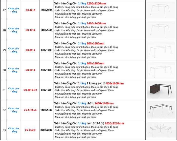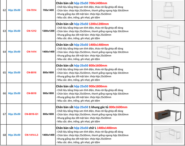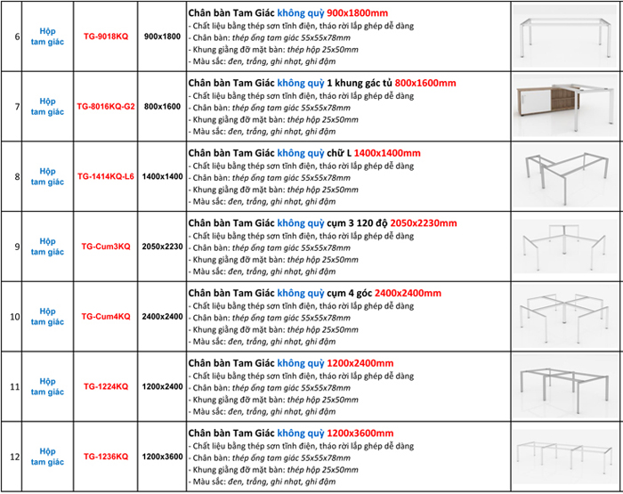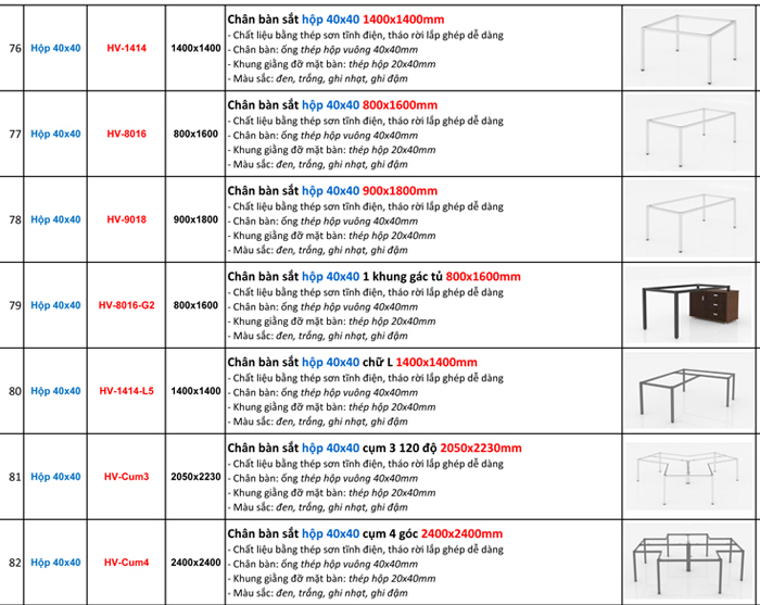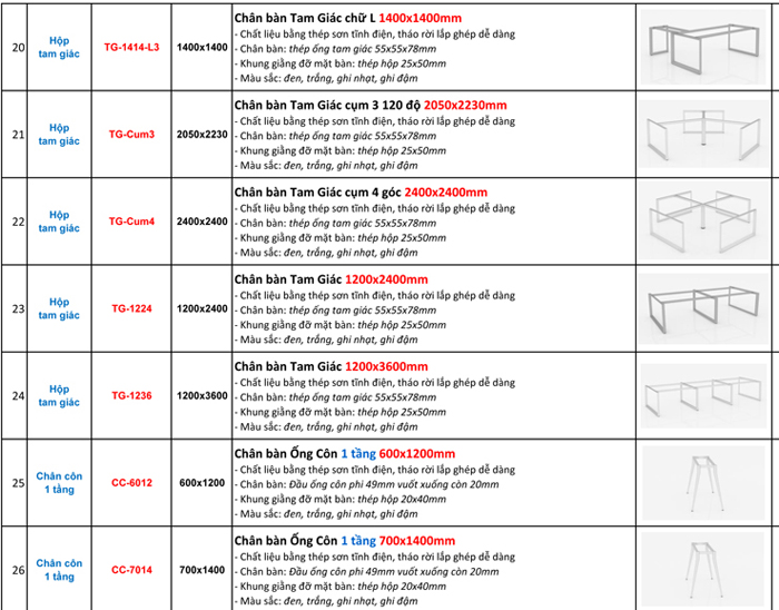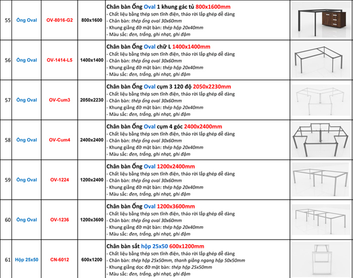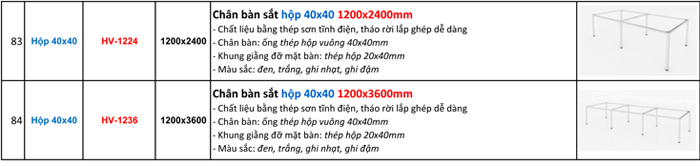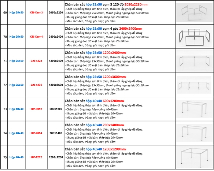 BÁO GIÁ BÁN LẺ CHÂN BÀN VĂN PHÒNG (KHUNG BÀN VĂN PHÒNG) LẮP GHÉP SƠN TĨNH ĐIỆN