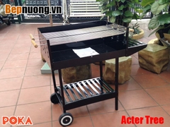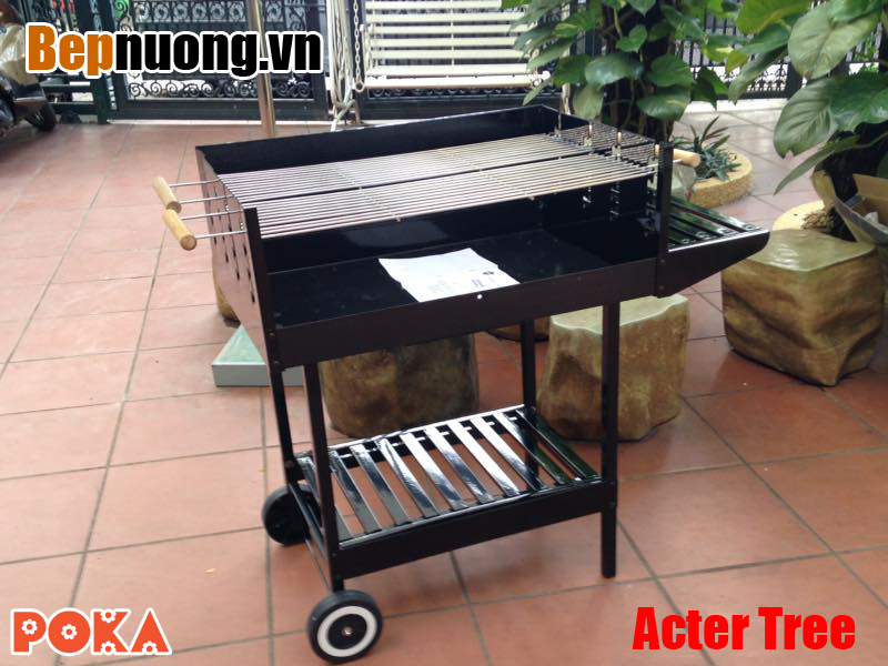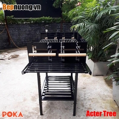 - Bếp nướng ngoài trời Acter Tree là loại lò nướng than hoa hình chữ nhật với hai vỉ nướng lớn 73x22.5 cm bằng thép không gỉ mạ Chrome có tay cầm bằng gỗ an toàn.