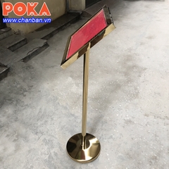Loại biển chỉ dẫn menu khách sạn nhà hàng này có thể tháo rời thành 3 phần rời nhau: phần khung chứa thông tin nội dung chỉ dẫn, phần cột trụ và phần chân đế.