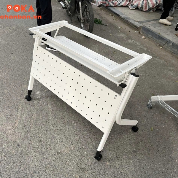 Đây là dòng chân bàn gấp gọn nhập khẩu cao cấp với kích thước 1200x600mm rất phù hợp làm bàn học dành cho trung tâm dạy học, bàn nhân viên, bàn sự kiện. 4 chân có 4 bánh xe giúp cho việc di chuyển cơ động dễ dàng.