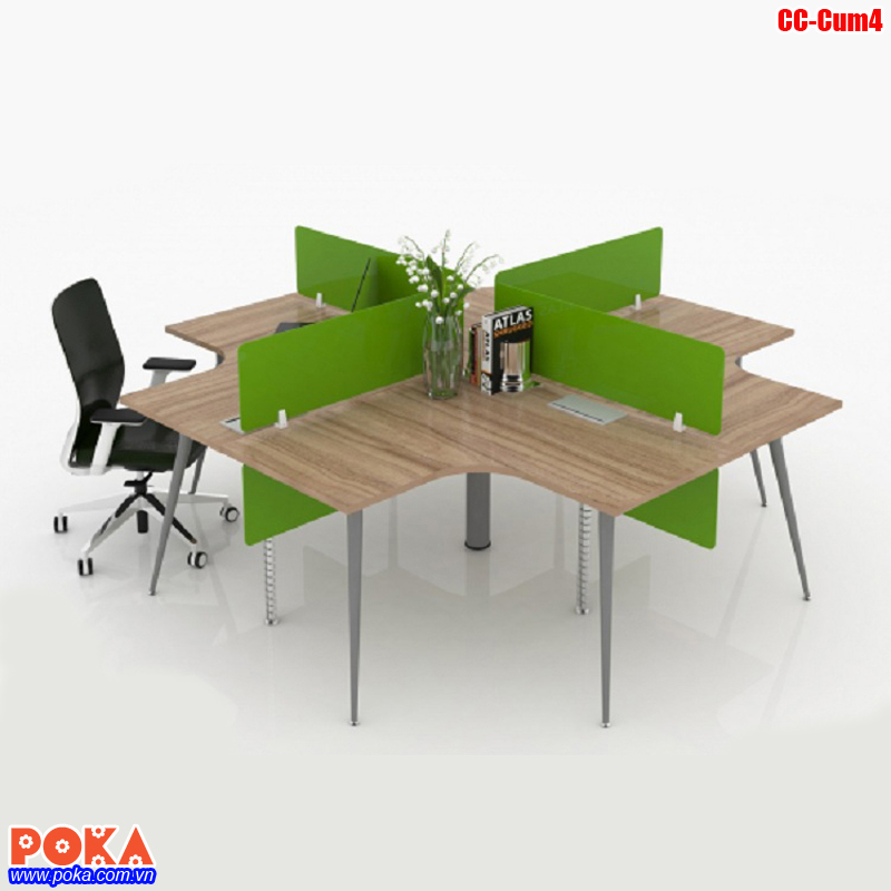 Bàn làm việc cụm 4 góc sử dụng chân bàn nhân viên CC-Cum4