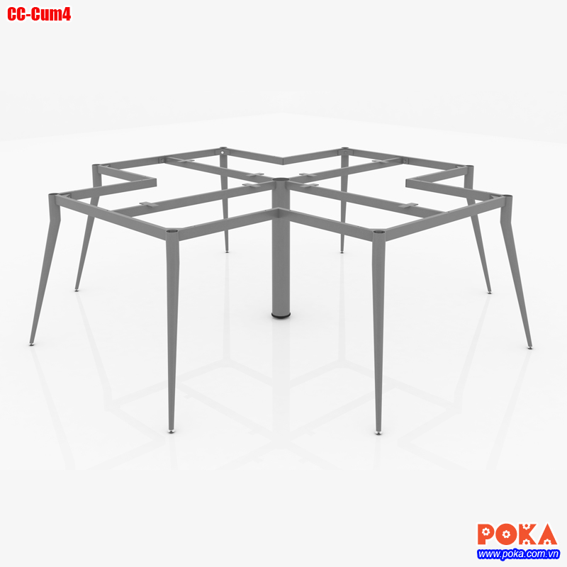 Nhằm khắc phục những nhược điểm trên POKA giới thiệu một mẫu chân bàn văn phòng sắt hộp ống côn 1 tầng CC-Cum4. Đây là mẫu khung bàn sắt văn phòng có cấu tạo tháo rời, lắp ghép linh hoạt, có thể tháo rời bằng tay một cách dễ dàng. Tiết kiệm rất nhiều thời gian, công sức mỗi khi cần thay đổi văn phòng, không gian làm việc. Khung chân bàn CC-Cum4 dùng cho bàn nhân viên cụm 4, bàn làm việc 4 chỗ ngồi, công ty tùy theo nhu cầu của người sử dụng