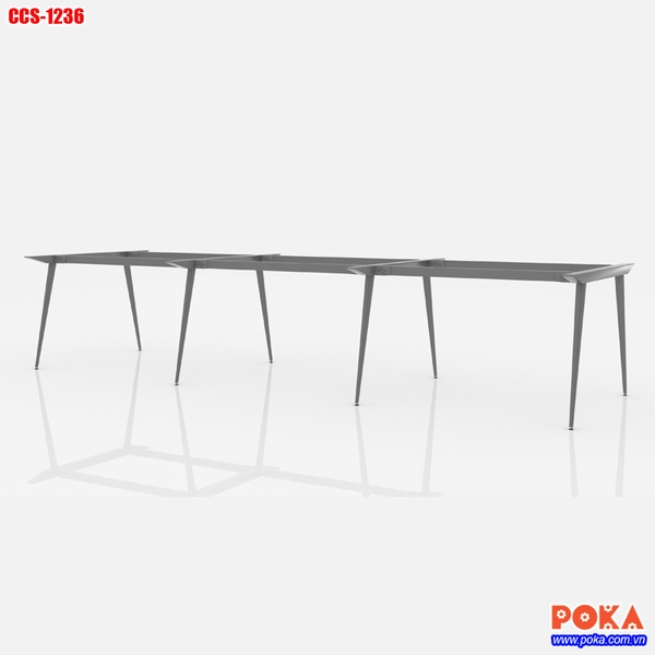 Nhằm khắc phục những nhược điểm trên POKA giới thiệu một mẫu chân bàn văn phòng sắt hộp ống côn 1 tầng CCS-1236. Đây là mẫu khung bàn sắt văn phòng có cấu tạo tháo rời, lắp ghép linh hoạt, có thể tháo rời bằng tay một cách dễ dàng. Tiết kiệm rất nhiều thời gian, công sức mỗi khi cần thay đổi văn phòng, không gian làm việc. Khung chân bàn CCS-1236 dùng cho bàn nhân viên cụm 6, bàn làm việc 6 chỗ ngồi, bàn họp công ty tùy theo nhu cầu của người sử dụng