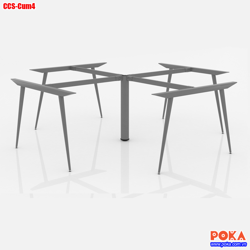 Nhằm khắc phục những nhược điểm trên POKA giới thiệu một mẫu chân bàn văn phòng sắt hộp ống côn 1 tầng CCS-Cum4. Đây là mẫu khung chân bàn sắt có cấu tạo tháo rời, lắp ghép linh hoạt, có thể tháo rời bằng tay một cách dễ dàng. Tiết kiệm rất nhiều thời gian, công sức mỗi khi cần thay đổi văn phòng, không gian làm việc. Khung chân bàn CCS-Cum4 dùng cho bàn nhân viên cụm 4 góc, bàn làm việc 4 chỗ ngồi đối xứng, tăng sự tập trung và hiệu quả công việc.