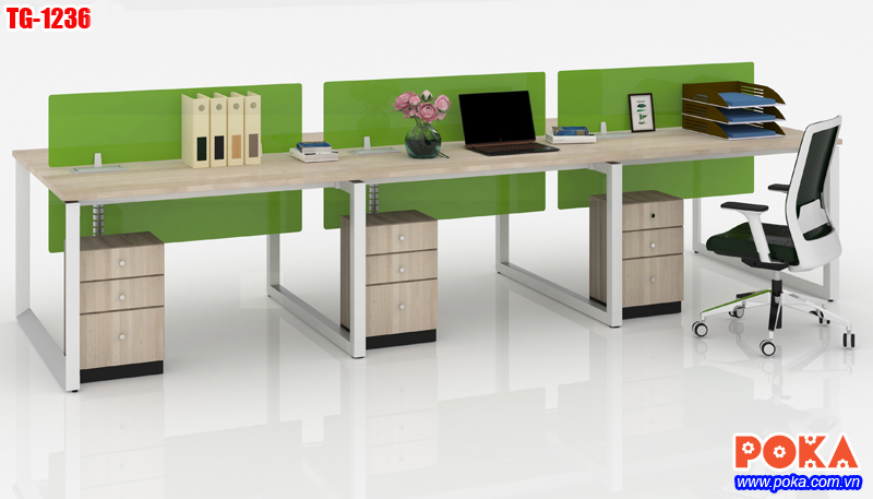 Cụm bàn nhân viên 6 chỗ ngồi sử dụng chân bàn văn phòng TG-1236