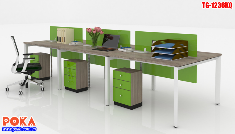 Cụm bàn nhân viên 6 chỗ ngồi sử dụng chân bàn văn phòng TG-1236KQ