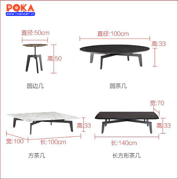 Bộ chân bàn trà sofa có nhiều kích thước cho quý khách hàng lựa chọn: