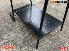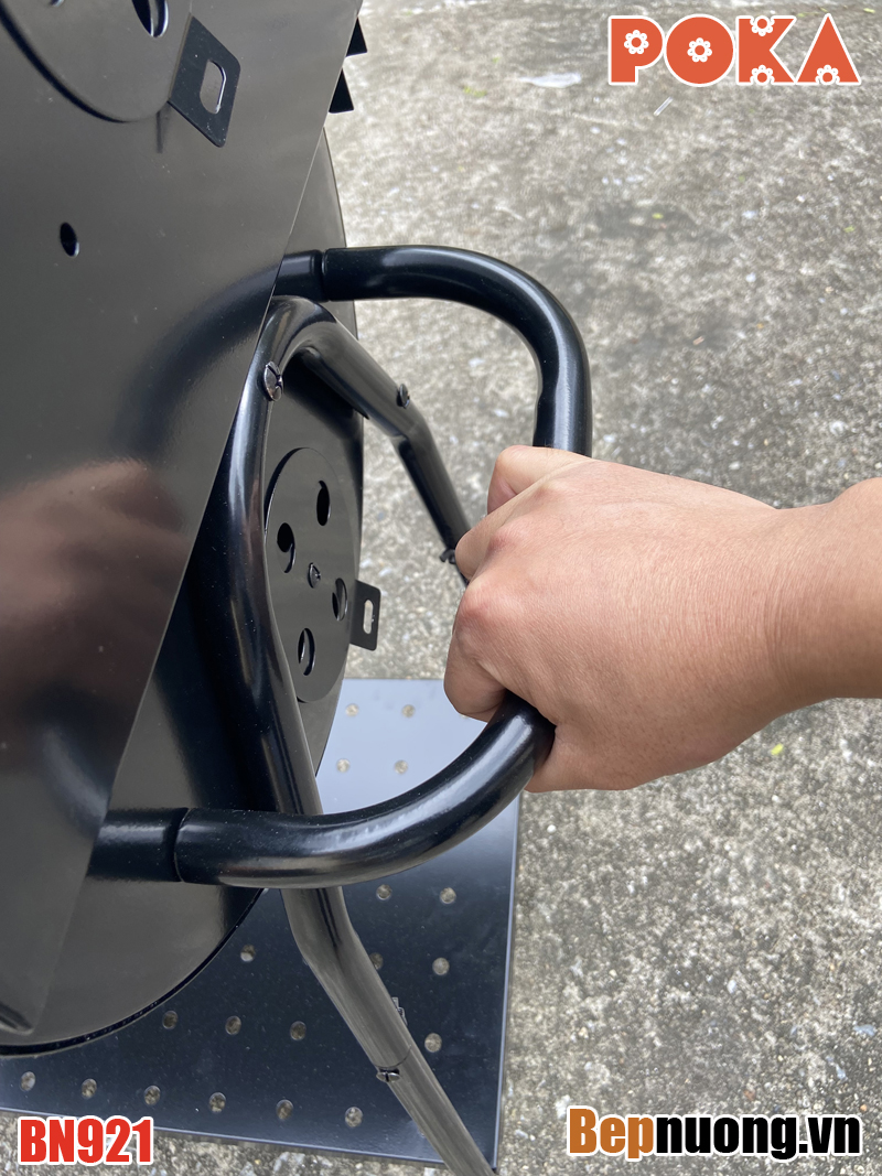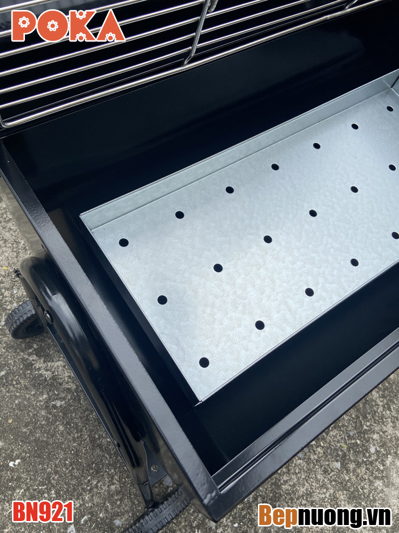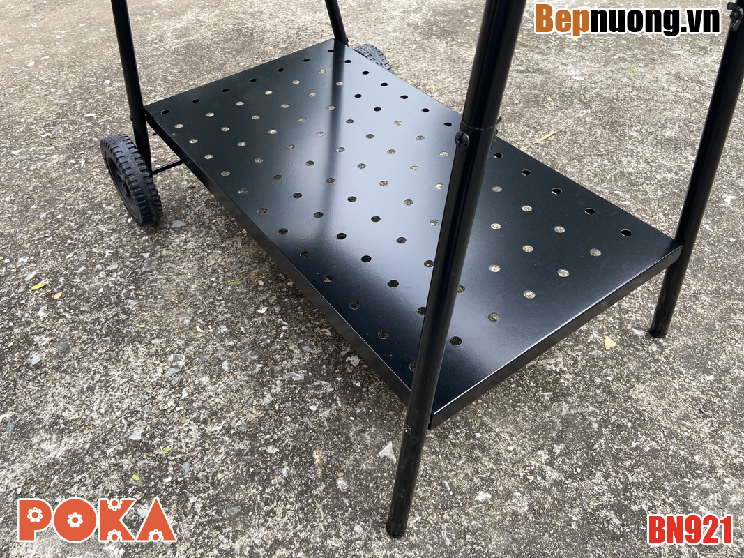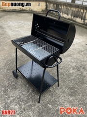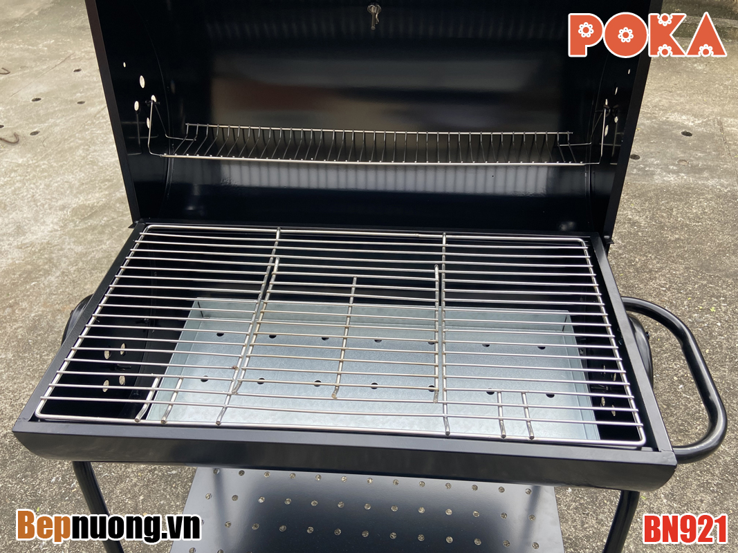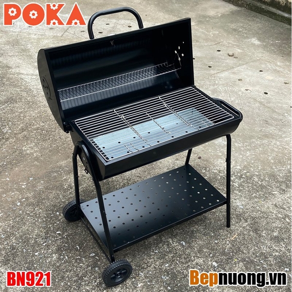 Bếp nướng than hoa BBQ BN921 là có nắp đậy giúp giữ nhiệt làm chín thức ăn nhanh hơn, có thể om giòn hoặc nướng thịt miếng tảng. Có bánh xe giúp thuận tiện khi di chuyển.