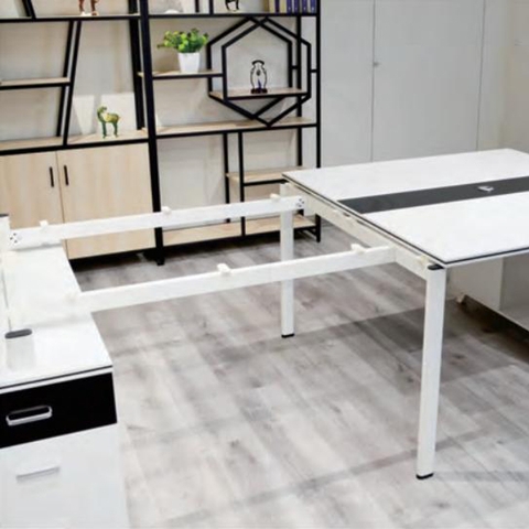 Ở giữa có 1 chân bàn có vách điện vừa tăng khả năng chịu lực đỡ mặt bàn, vừa dùng để đi dây điện, ổ cắm, tạo điểm nhấn cũng như thẩm mỹ của không gian nội thất.
