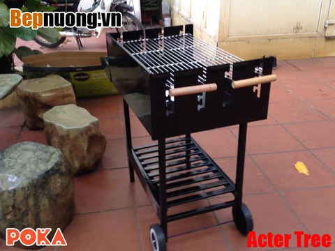 Chất liệu: thân bếp và khung bếp bằng thép sơn tĩnh điện chịu nhiệt, vỉ nướng bằng inox, giá đỡ bằng gỗ.