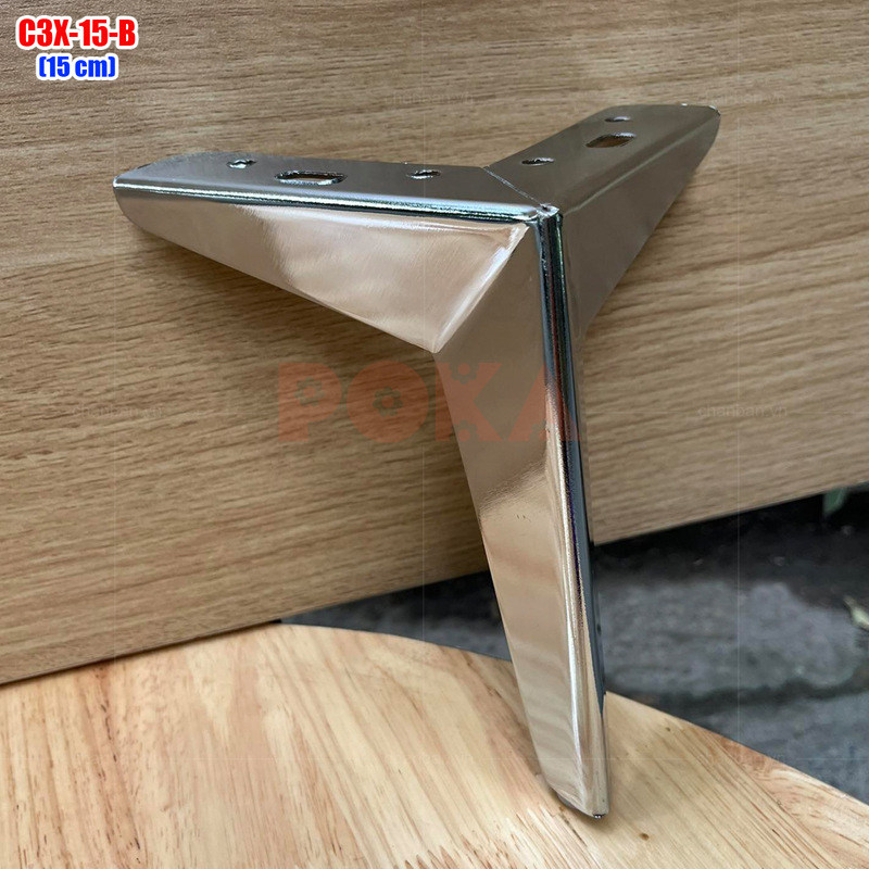 Chân sofa 3 ngạnh xéo C3X màu bạc có 2 kích thước chiều cao 13cm và 15cm