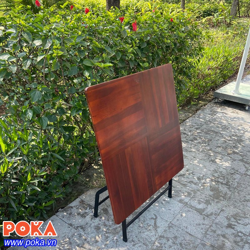Khung sắt của bàn ghế ăn được làm từ ống Oval, nhưng lại được uốn theo chiều nghiêng tạo nên sự hoàn hảo về thẩm mĩ nhưng lại tăng thêm sự vững chắc. Bàn ăn có thể gập gọn khi vận chuyển hoặc khi không sử dụng để tiết kiệm không gian. Khung được sơn tĩnh điện màu đen làm nổi bật màu gỗ tự nhiên cùng sự sang trọng của bộ bàn ghế ăn.