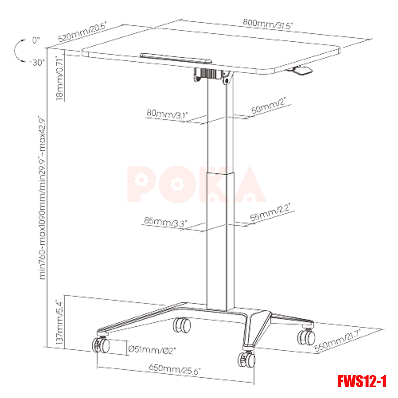 - Tính năng: nghiêng 8 cấp độ (0 độ - 30 độ)