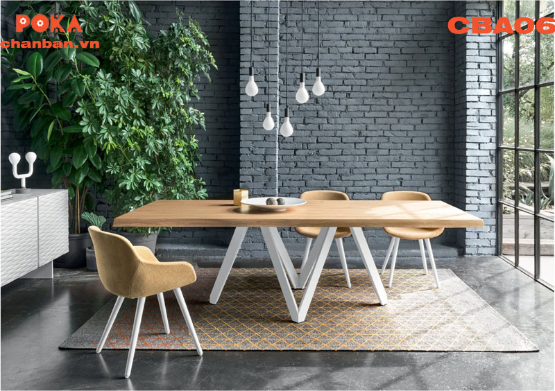 Chân bàn ăn CBA06 có thể kết hợp với nhiểu loại mặt bàn khác nhau như gỗ nguyên tấm, mặt đá công nghiệp, mặt đá tự nhiên...Không chỉ được sử dụng làm bàn ăn gia đình mà còn sử dụng như bàn họp. Khi kết hợp với mặt đá sẽ trở thành một chiếc bàn ăn chân sắt cao cấp, sang trọng.