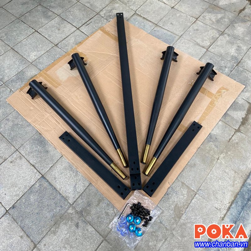 - Chất liệu: thép sơn tĩnh điện, chân ống côn tròn 49mm thu về 20mm, xi mạ màu vàng phía dưới.