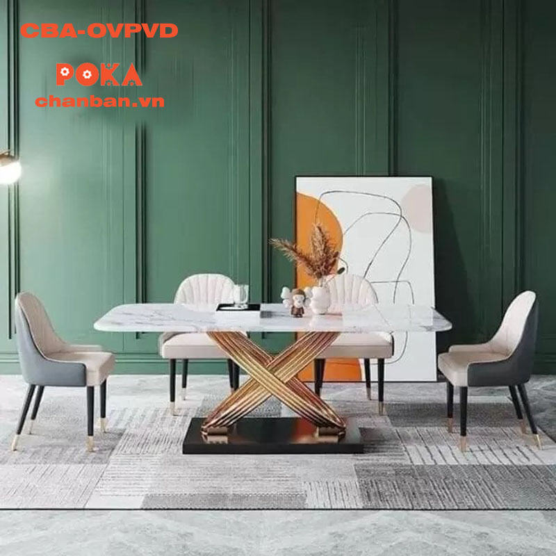 Chân Bàn Inox Mạ Vàng OVAL Chéo Nhập Khẩu CBA-OVPVD không chỉ có thiết kế đẹp mắt mà còn rất tiện dụng. Chân bàn chắc chắn, chịu lực tốt, phù hợp để sử dụng trong nhiều không gian khác nhau như phòng ăn gia đình, nhà hàng, khách sạn, quán cà phê…