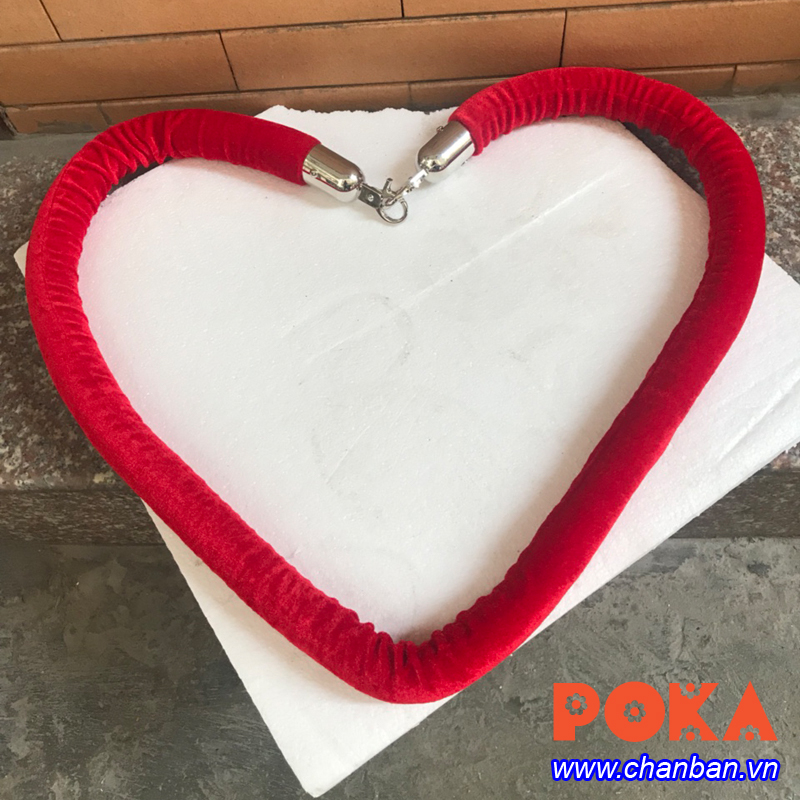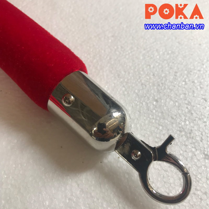 Dây nhung đỏ có móc khóa inox màu trắng thường dùng với cột hàng rào chắn inox ở trong khách sạn, nhà hàng hoặc khu nhà ga sân bay, viện bảo tàng, rạp chiếu phim, chung cư...