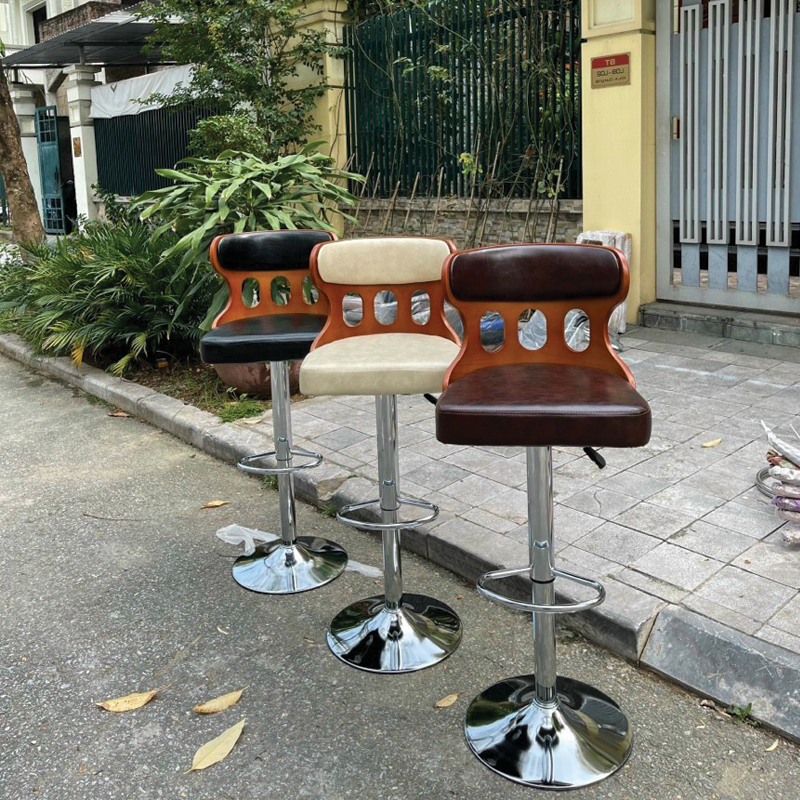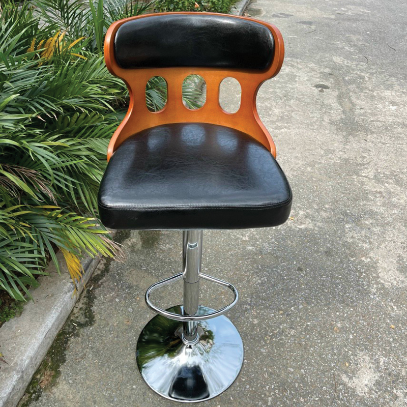 - Chất liệu: mặt đệm bọc da cao cấp, tựa gỗ, chân mạ inox xoay