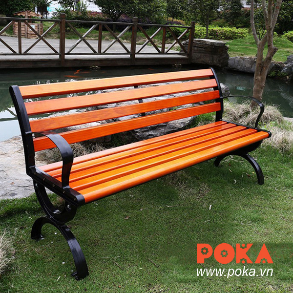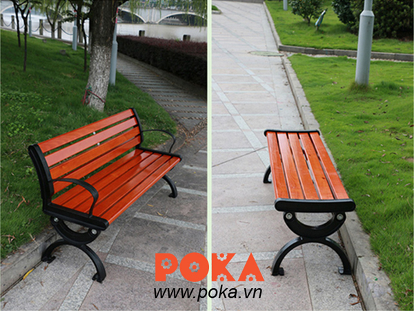 Ghế công viên được làm từ các thanh gỗ tự nhiên đã qua xử lý có thể chịu được mọi thời tiết nắng mưa.