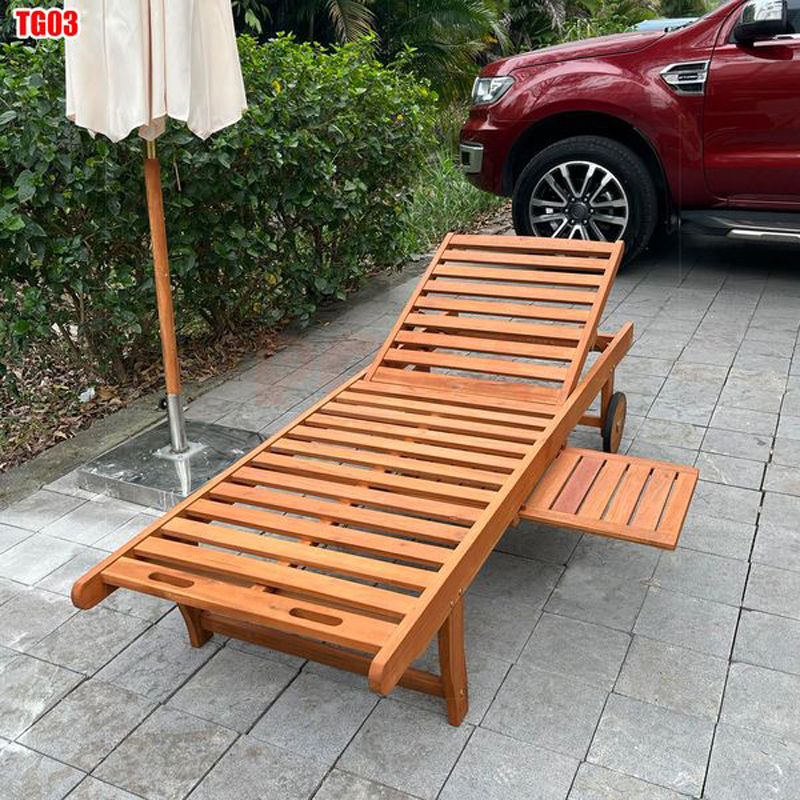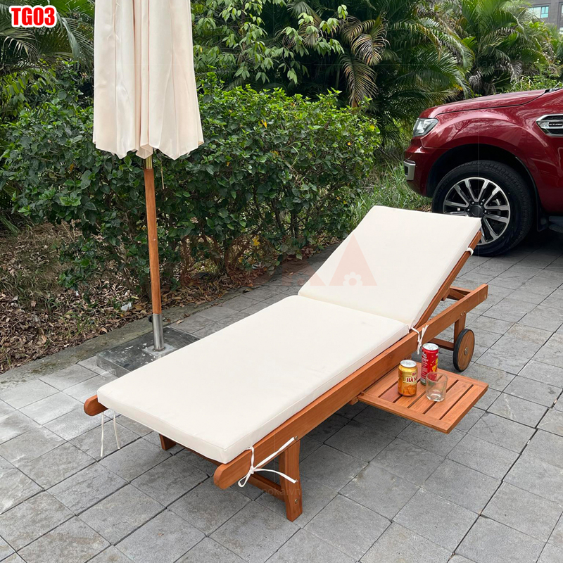 Giường tắm nắng bãi biển TG03 được làm bằng gỗ thân thiện với môi trường. Giường tắm nắng này có thể dùng làm ghế hồ bơi hoặc cũng có thể làm ghế thư giãn đọc sách để ở ban công, hành lang hoặc ở bên trong phòng khách xem tivi...