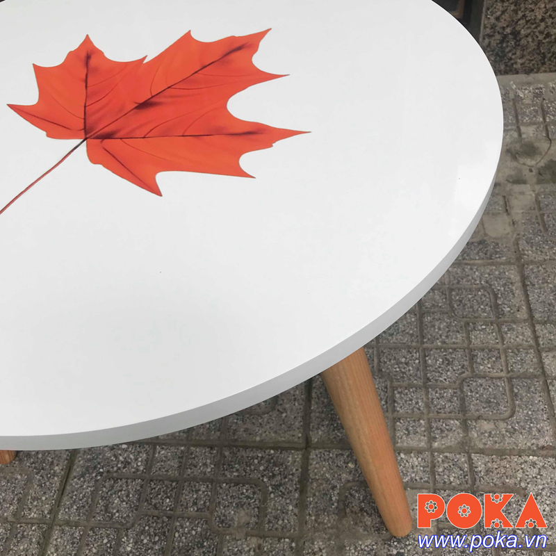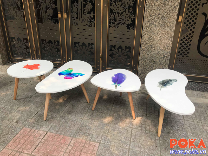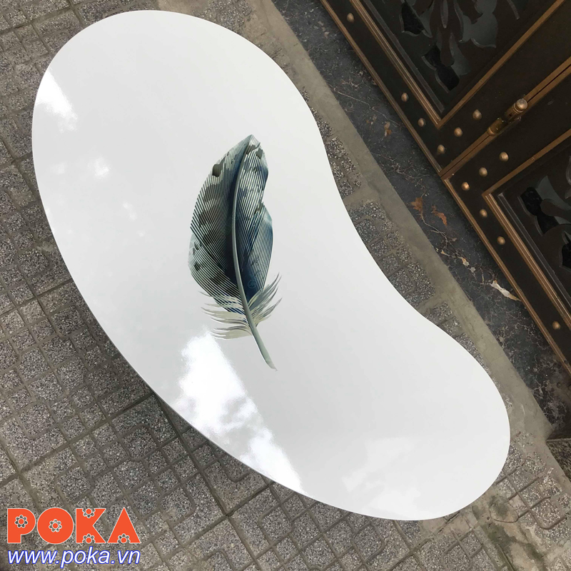 Mặt bàn in UV 3D rất phù hợp làm bàn trà, bàn làm việc tạo không gian thêm sinh động và đầy màu sắc.