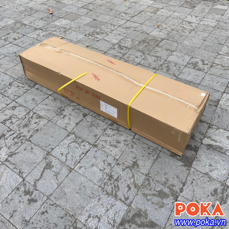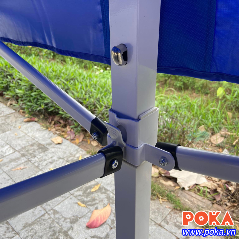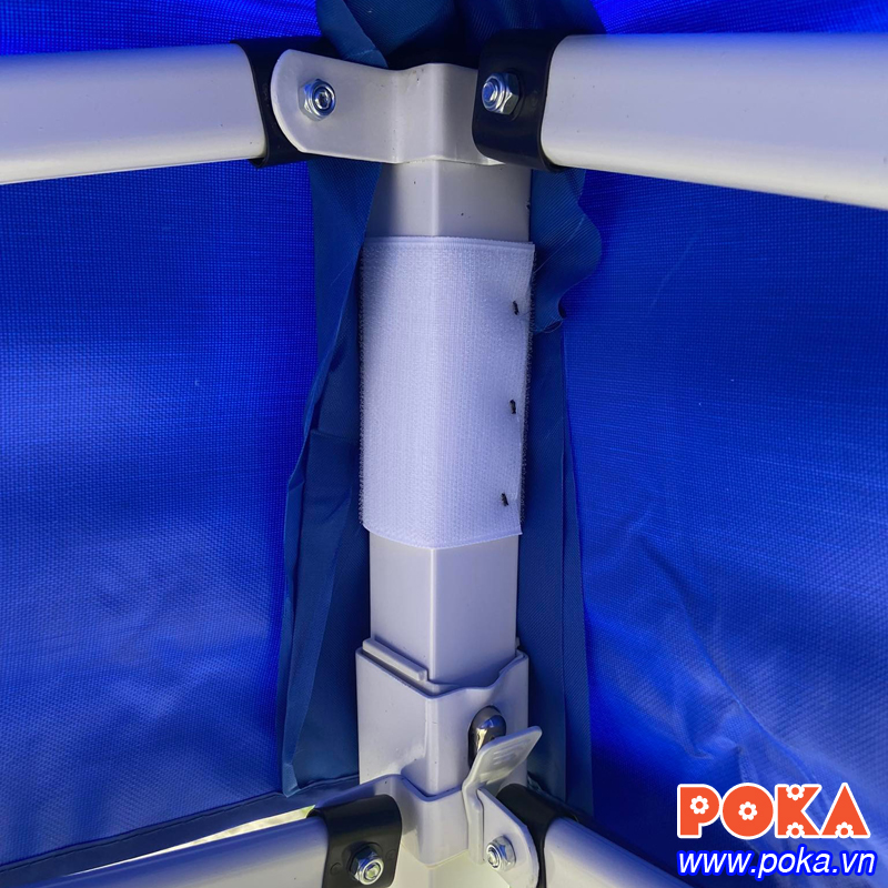 - Chất liệu: khung bằng thép sơn tĩnh điện, mái che vải bạt polyester 800D tráng PVC chống thấm