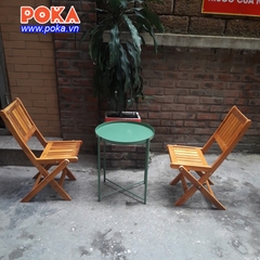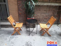 Ảnh 1: Bàn trà chanh chân sắt khay rời được phối với ghế xếp gỗ mini