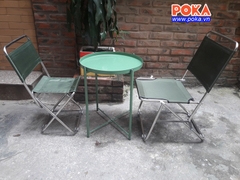 Ảnh 2: Bàn trà chanh chân sắt khay rời được phối với ghế dù xếp inox Thanh Long